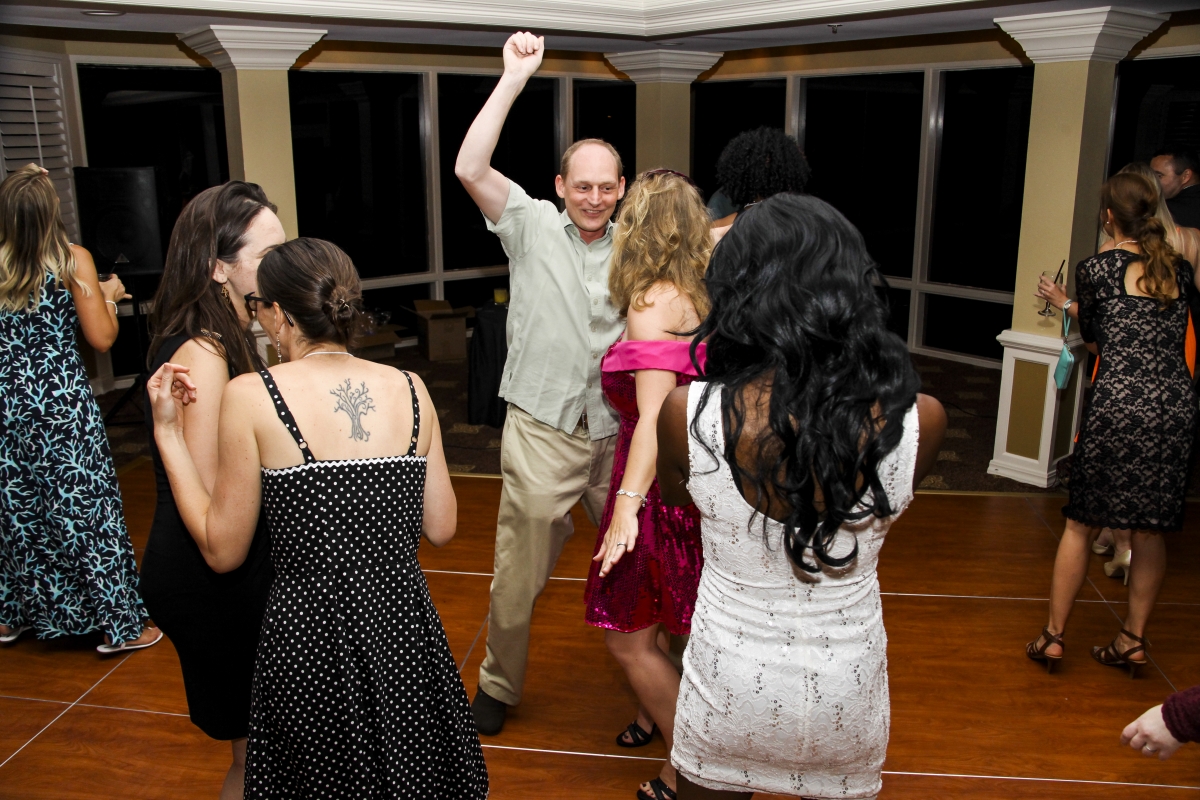 Having fun in the photo booth at the alumni dinner